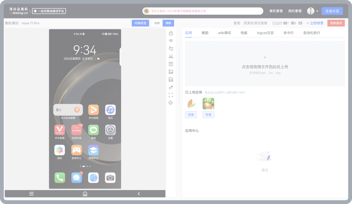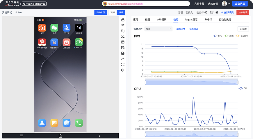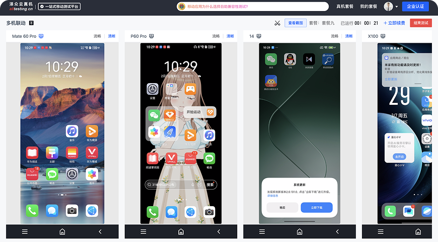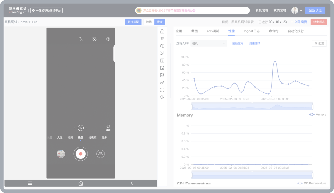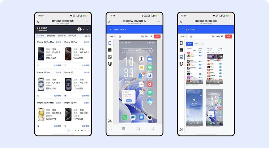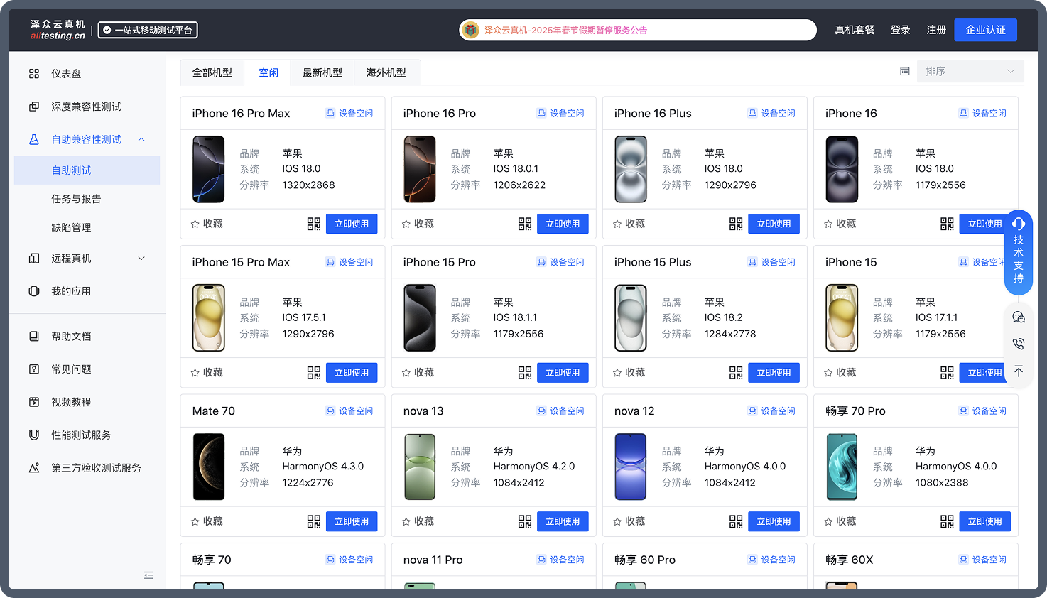 泽众云真机通过网页操作接入云端的真实手机,覆盖市场海量机型,远程操控快速流畅,用户随时随地进行测试,调试应用,快速定位问题,被测应用轻松获得FPS、CPU、Memory、CTemp、Network、FrameTime等性能参数和媒体声音,为用户节省租购测试机的庞大费用。