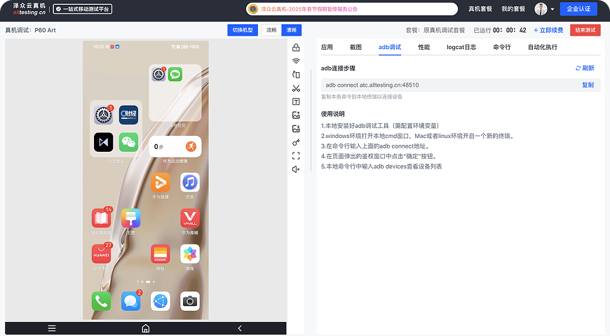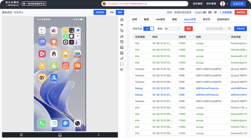 【远程真机调试】是通过网页流畅、稳定、安全、高效的操作云端手机,进行手机APP的调试与测试,最多支持4台移动设备进行【多机联动】调试。
